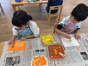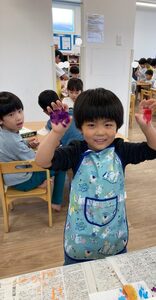 両手も使って、絵の具製作をしましたよ♪