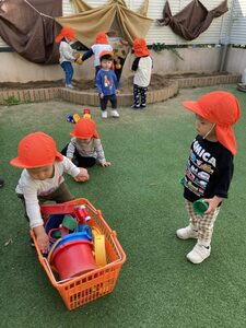 おもちゃを持って、お砂場へ!!