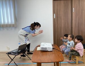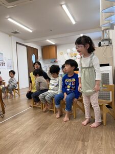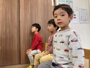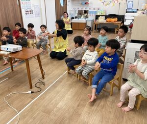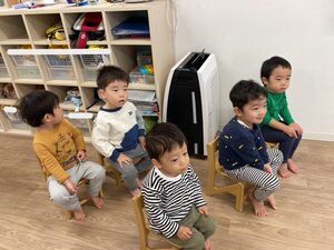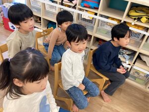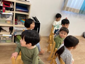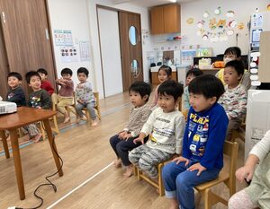 つばさ組さん、お椅子に座って、手洗い教室スタートです✨
