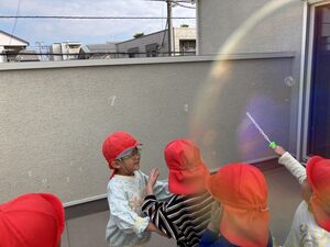 今日は天気がいいから、シャボン玉がとてもきれいに飛んでいきましたよ♪