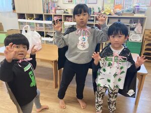 のぞみ組さん、かわいいバッグを持って、お菓子をもらいに行きましょう♪
