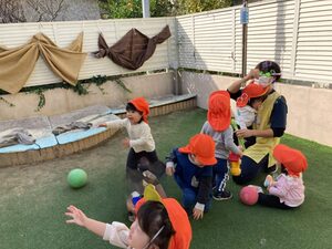 英語の後は、園庭でしゃぼん玉を追いかけました(#^^#)
