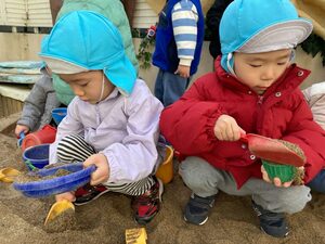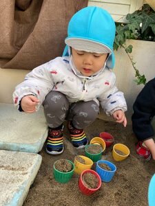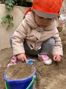 お砂場で、夢中でおままごと♪
