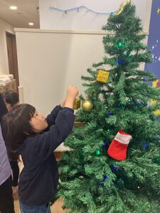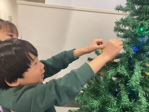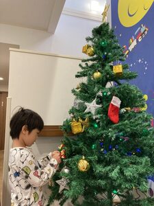 以上児さんはクリスマスツリーの飾り付けをしました🎄