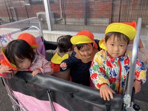 のぞみ組さんは、お散歩カーに乗ってお散歩に出発しました!!