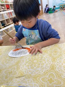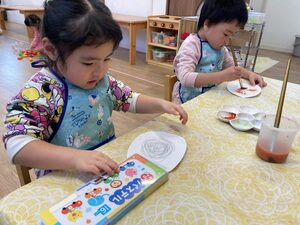 お絵描きしたあと、絵の具を使って製作しましたよ♪