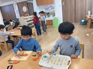 パズルや、手先を使うピンセットのお仕事など、自分でおしごとを選んで行います!(^^)!