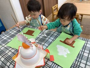 みのり組さん、絵の具を使って製作に取り組みました!!