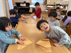 かける組さん、節分の製作をしてますね♪