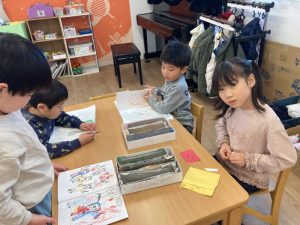 自分で好きな色の折り紙を選んだり、自由画帳にお絵描きをします⭐