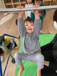 鉄棒にぶら下がったりマットの上からジャーンプ😆
