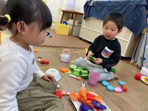「ごはんできたよー!」と持ってきてくれるお友だち♪