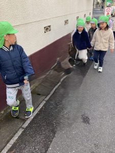その後はかける組さんとひかり組さんは一緒に園周辺のお散歩に行きました!