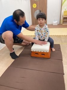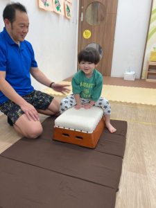 今度は、カエルさんの姿勢で、跳び箱にピョン♪