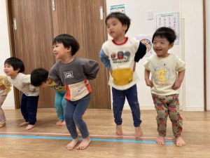 みのり組さん、カエルさんぴょんぴょんから体操スタートです!!