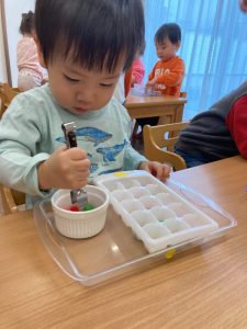 同じ色のボールを一生懸命集めてますね✨