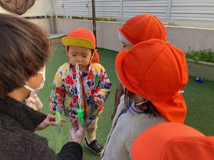 シャボン玉を飛ばしたり、園庭を楽しみました♪