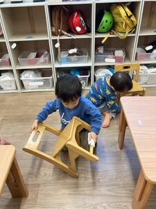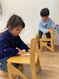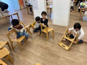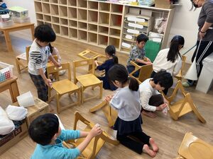 つばさ組さんも、自分のお椅子のお掃除からスタートです♪