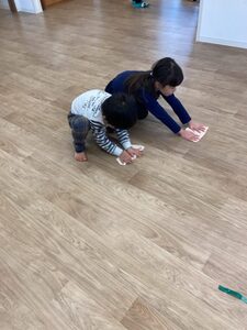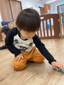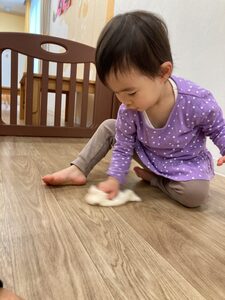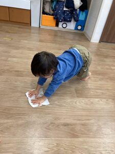 小さな手で一所懸命ぞうきんを握ってますね!(^^)!