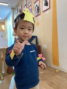 お面と手飾りを着けて、とっても可愛らしい姿をしているのは、のぞみ組さん♪