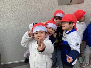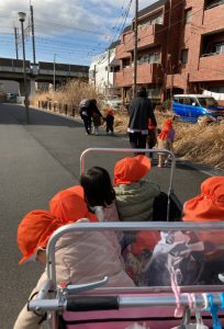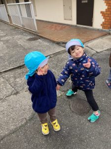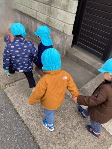 みのり組さん、コートを着て、お散歩に出発です!!