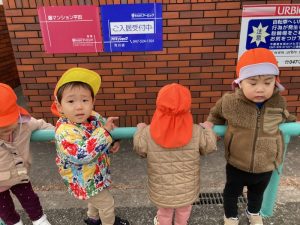 避難訓練が終わって、そのままお散歩に出かけたのぞみ組さん♪