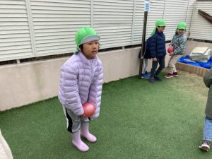 縄跳びのあとは、ボール遊びです!!