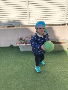 ボールで、キックしたり投げたり、とっても楽しそう♪