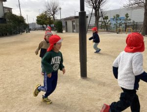 「待って~!」と追いかける鬼さんと逃げるお友だち♪