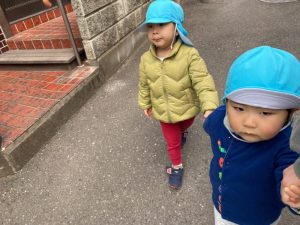 避難訓練後は、お散歩に出かけたお友だち✨