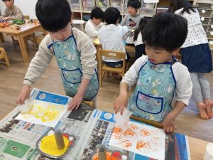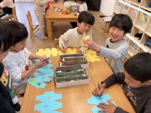 ひかり組さん、エプロンをつけて、製作に取り組んでますね!!