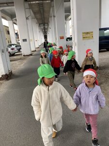 かける組さん・ひかり組さんは、市川駅方面へお散歩です!!