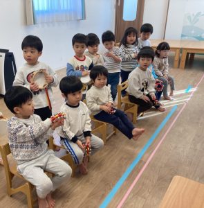 自由遊びのあとは、発表会の合奏の練習を頑張ります!!