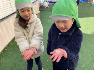 発表会の練習のあとは、園庭に出て、雪遊びをしました!!